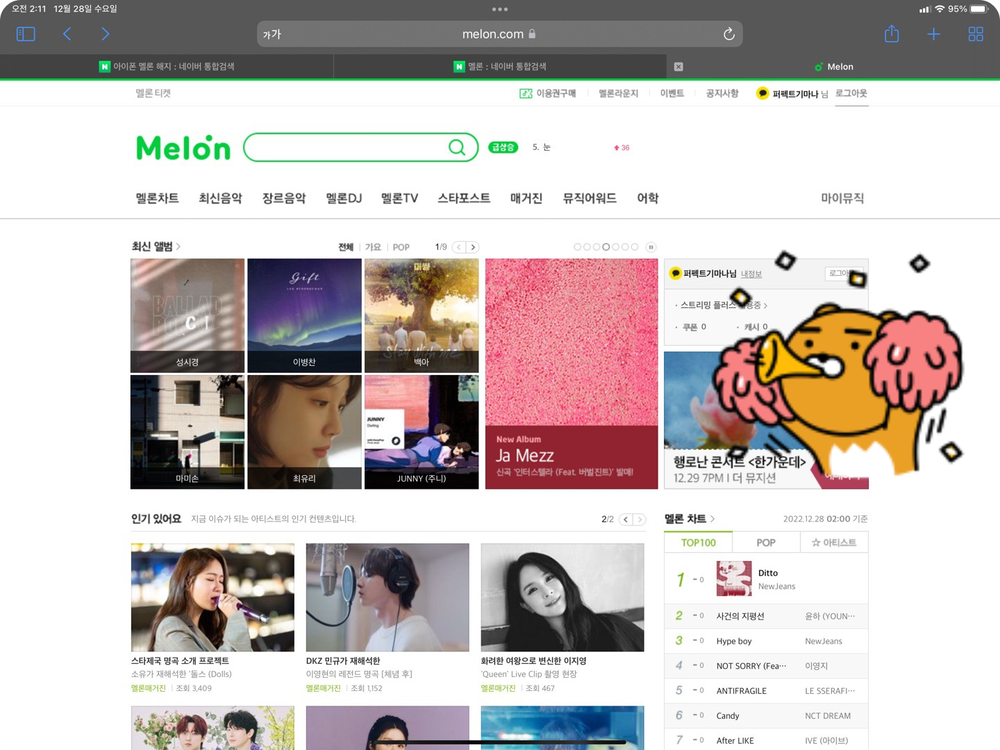 무시하시고 멜론 홈페이지로 들어가십시요. pc버전이라 다행입니다.