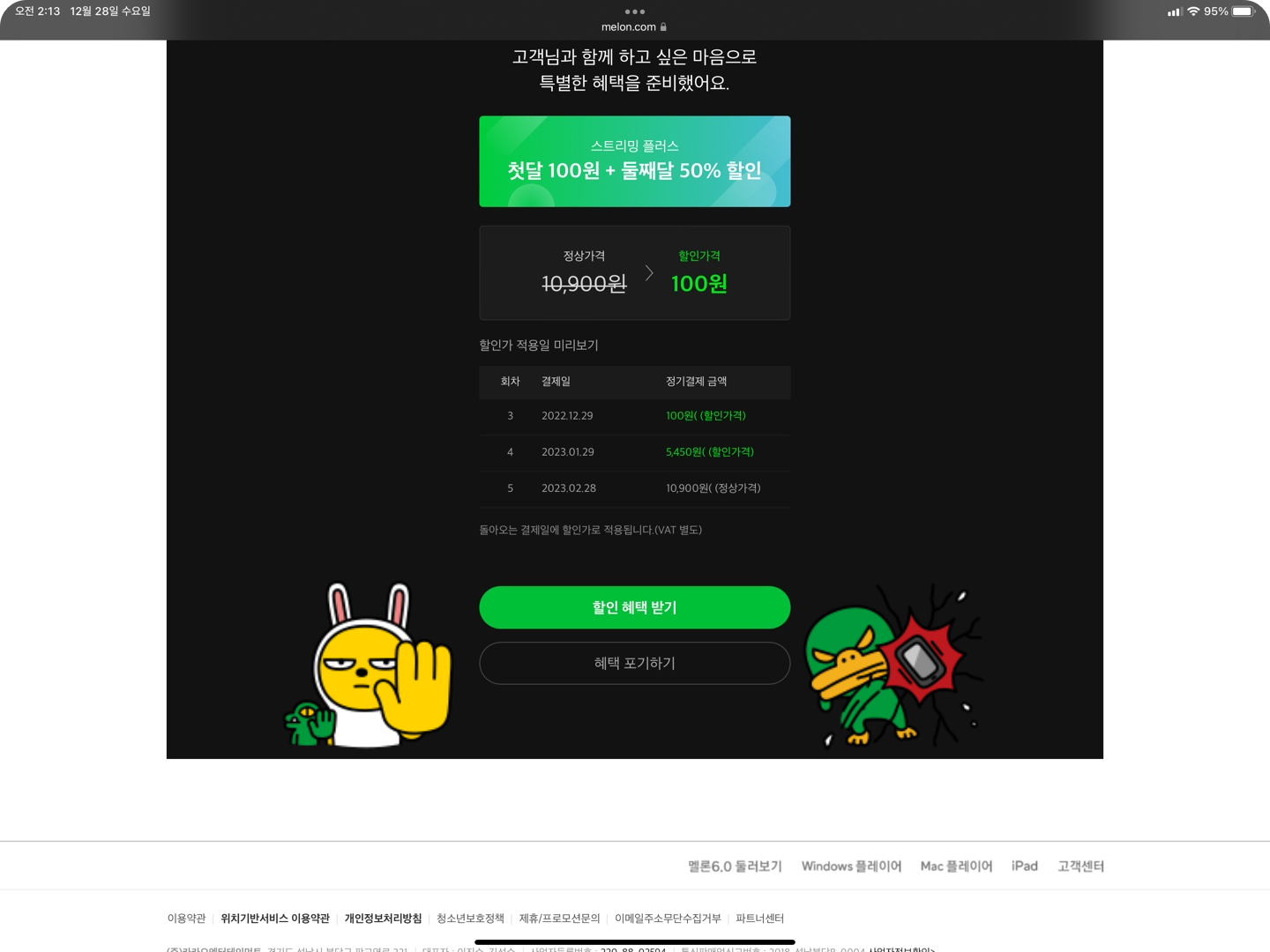 두달동안 월 100원에 해주신건 감사하지만, 제가 그노래들을 안들어서 ㅜ,ㅜ