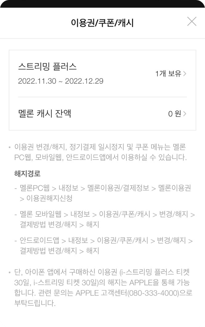 아이폰으로 멜론 해지하기 정기권 해지방법