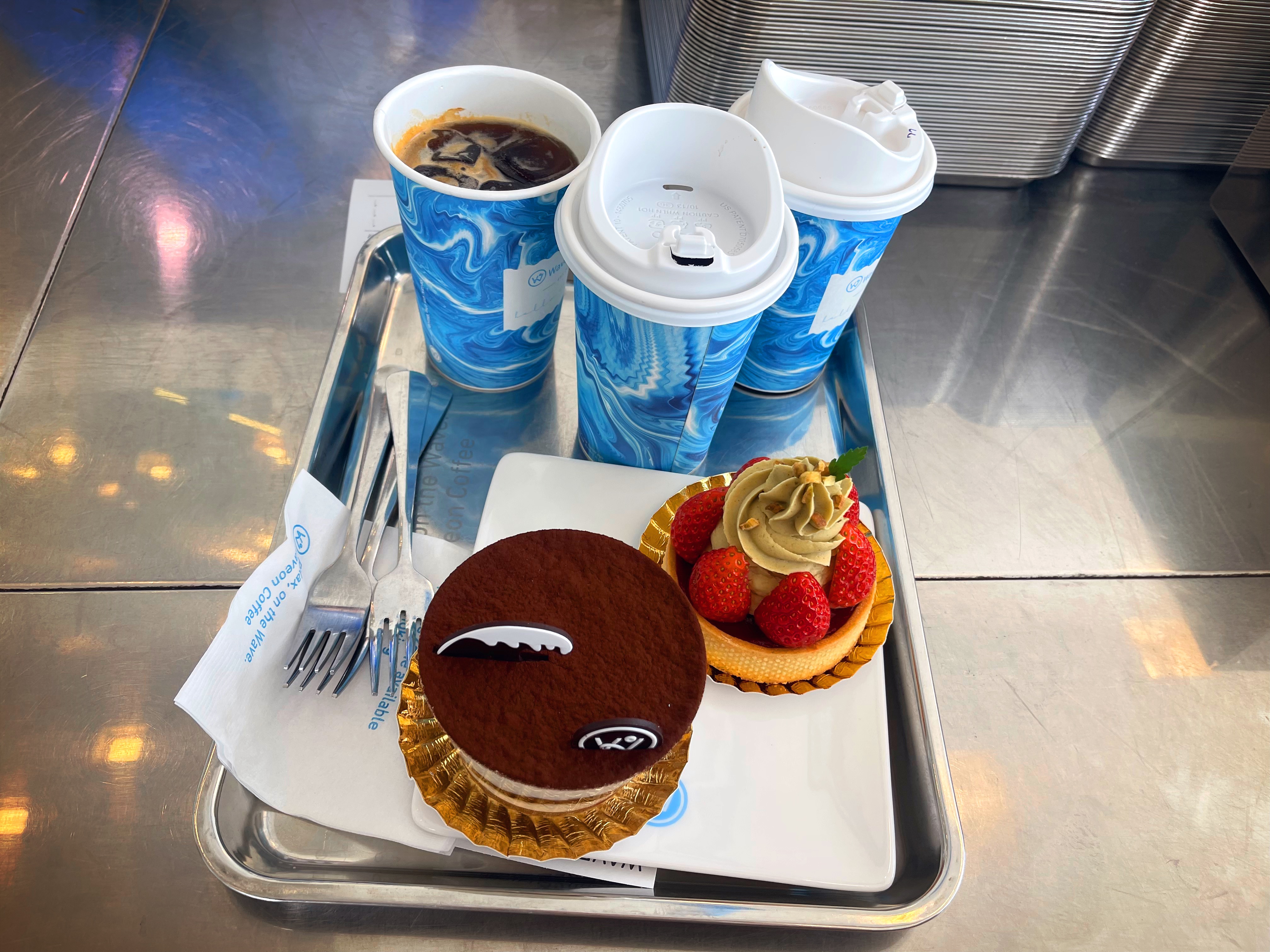 웨이브온의 케익, 셋이서 두개 먹었습니다. 저는 타르트를 좋아해서, 그리고 티라미수는 웨이브온 느낌이라 ^^