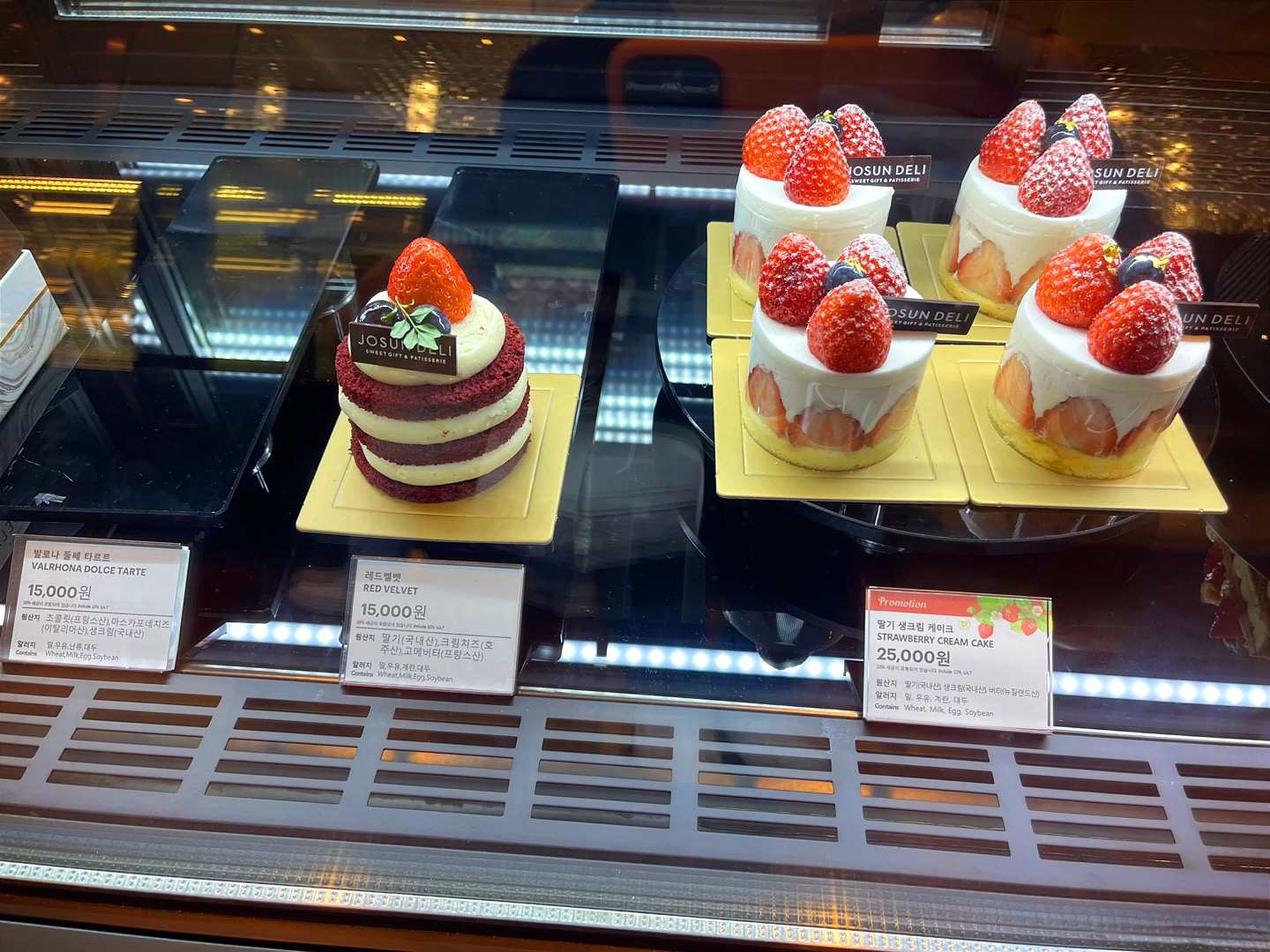 Josun Deli : Sweet gift & Patisserie 프로모션 딸기 생크림 케이크 25000원이었습니다. 옆에 다른 미니 케익들은 만원~ 15000원정도 였는데 유독 비싸다 싶었는데, 이상품은 프로모션 제품으로 happy hour 할인적용도 되지 않았습니다.