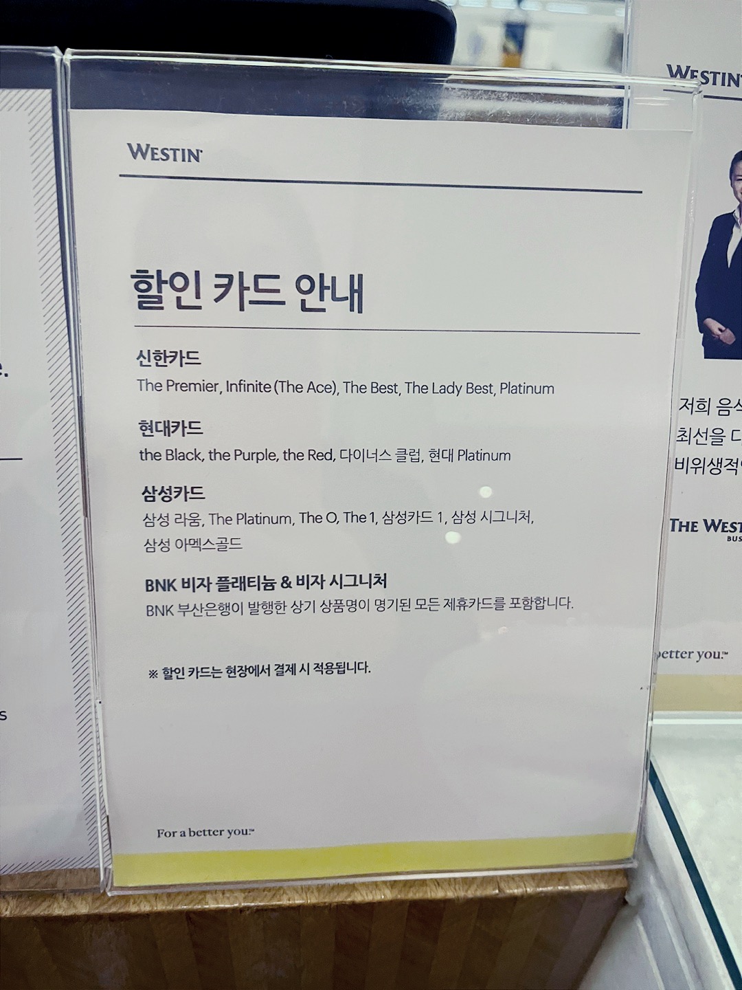 할인카드 안내 (할인카드는 현장 결제시 적용)