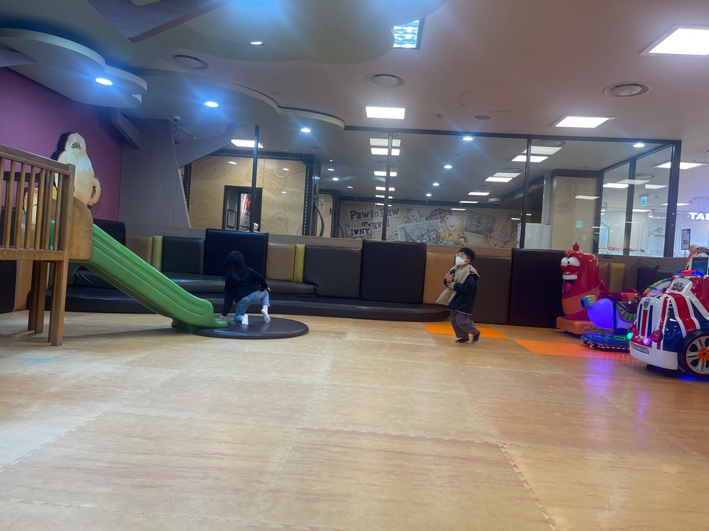 원래 우리는 엔씨백화점에서 장을 보고 있었는데, 양말도 사고 머리핀도 사고 그러고 집에 가려는데 굳이 키즈카페를 가고 싶다는거 안된다고 지금 마감시간이라고 했더니 놀이방에서라도 놀고 싶다는 아이들