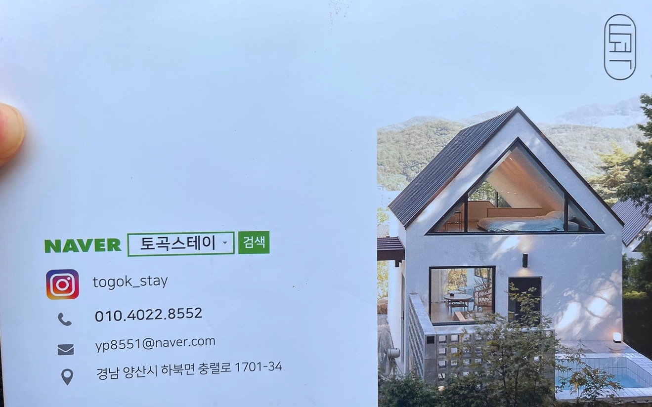 숲에 있는 것이 한번쯤 가보고 싶다는 생각은 들었는데, 제가 사진 찍어왔습니다. 토곡 스테이 멋진 독채로 보였습니다.