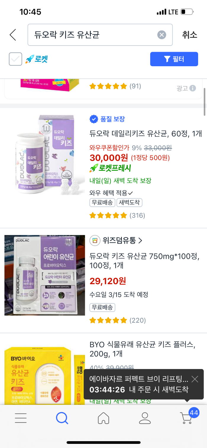 듀오락데일리키즈 60정에 3만원인데(쿠팡할인해서)