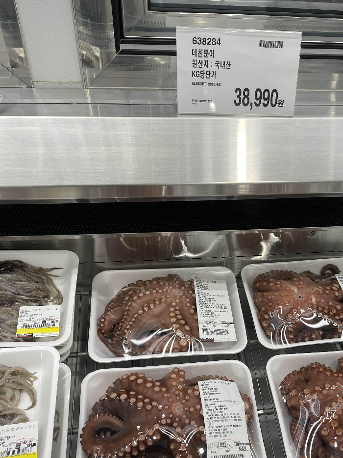 데친문어 키로당 38990원입니다.