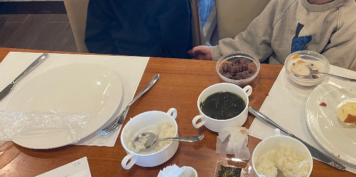 아이데리고 뷔페가면 늘 돈아깝고, 잘안먹는데 특히나 안먹는 아이를 키우는지라 싹 한번 둘러 보았습니다. 초코첵스와 후레이크를 좀 먹기는 했으나 우유에 말아서는 밍기적 거리고, 잼에 빵발라먹는것을 좋아해서 그나마 조금 먹나했죠. 엄마는 따뜻한 커피에 파인애플로 … 결국 김에 밥싸서 좀 먹이고 나오는 상황. 역시 아이조식은 제값 다냈으면 엄청난 후회가 들었을 식사입니다. 뷔페측 잘못은 아니고 아이들이 편식이 좀 있어서 … 저도 아침이라선지 그다지 잘 먹어지지 않고 그랬던… 계란 후라이 오믈렛 받아와서 먹일걸 그생각이 이제야 드네요. 오믈렛+김+미역국 밥먹이기 좋겠습니다.