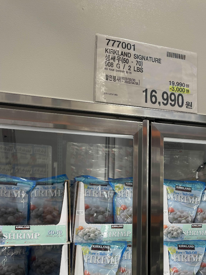 코스트코 kirkland signature 생새우 50-70 가격 19990원