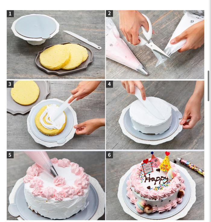 1 돌림판 위에 밑판과 케이크 시트 1장을 올려주세요