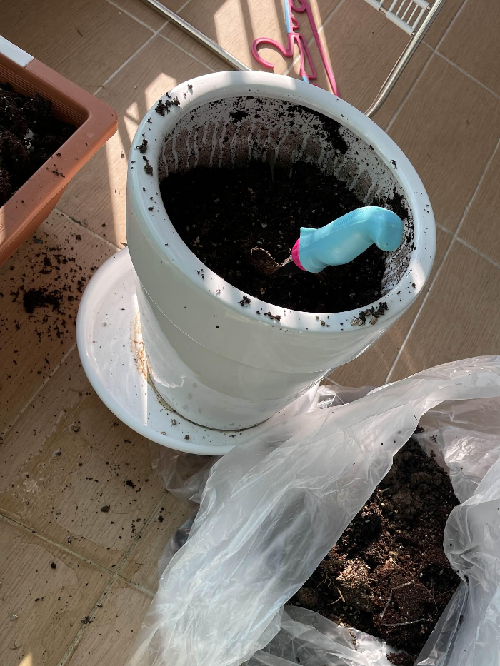 화분에서 죽은것 같은 올리브나무를 빼냈더니 역시… 나무를 감싸고 있는 흙들이 냄새가 나는 진흙들이 있었다. 뭔가 물이 고여서 썩은것인가?