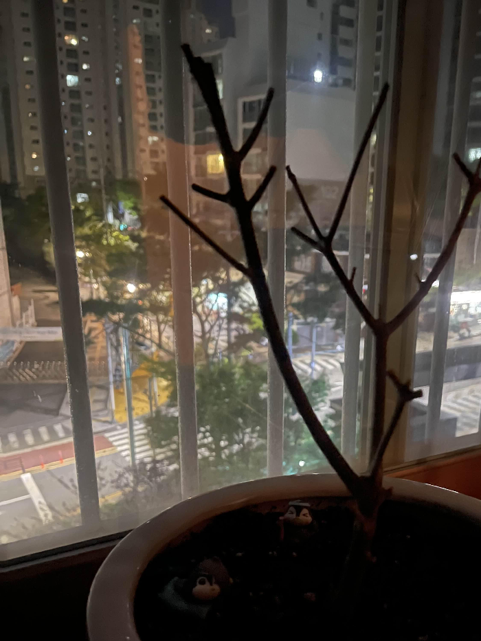 마른 가지들을 쳐내고 그냥 인공호흡하는 마음으로 흙을 갈아주고 날마다 좋은말 해줍니다.