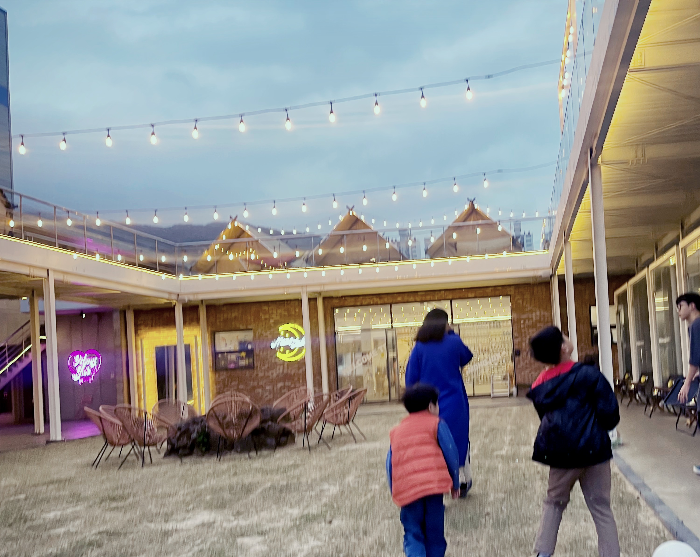 드림존 글램핑느낌의 이곳은 2층. 마침 비가와서 더 캠핑느낌나서 좋았습니다.