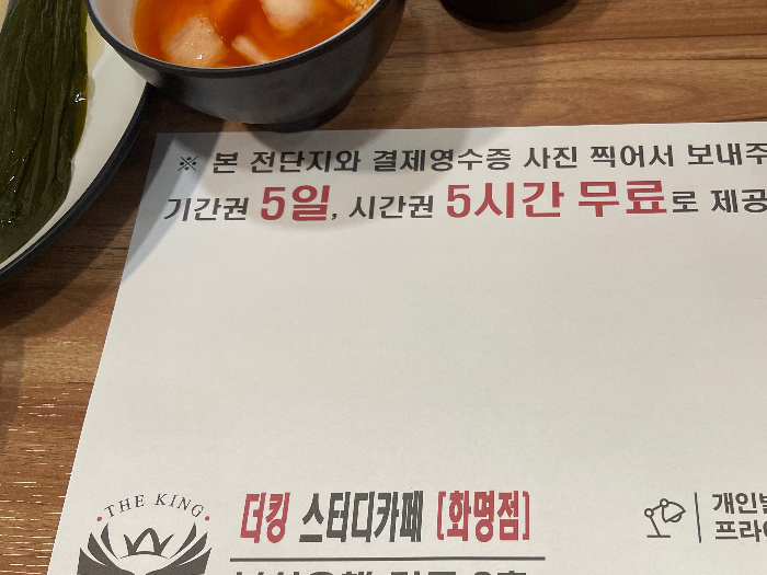 기간권 5일 시간권 5시간 무료로 제공한다는 스터디카페 :