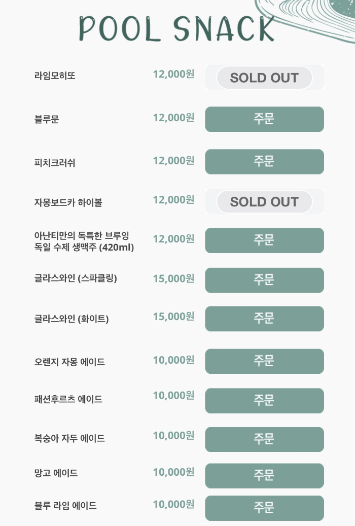부산 아난티코브 오너스풀 스낵 음료 주문방법 : 독특함