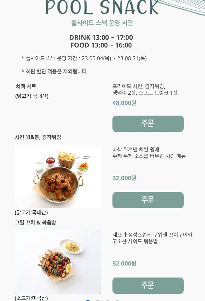 수영장서 먹는 치킨 + 감자 +야채스틱 = 3만원대, 빙수가 35000원임을 생각하면 치킨의 승입니다 정말