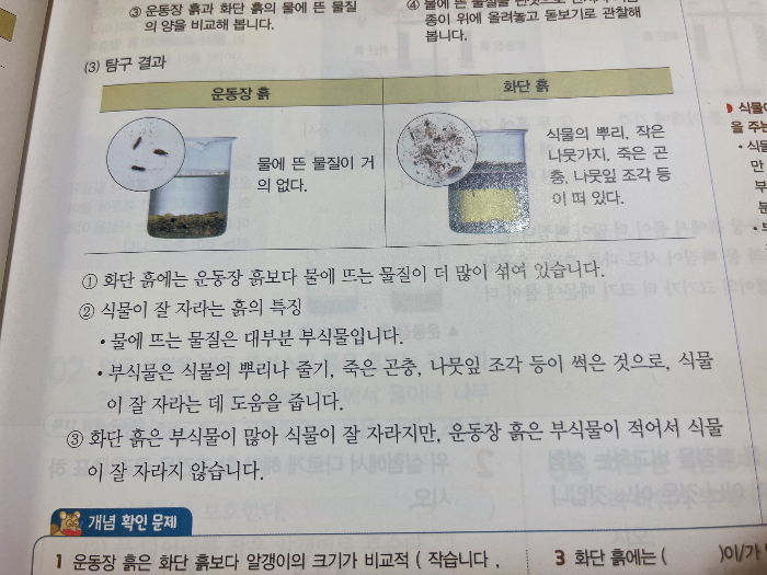 -운동장의 흙과 화단의흙 특징 비교
