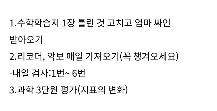 알림장에서 내일 단원평가 친다고 알려왔다. 아하~