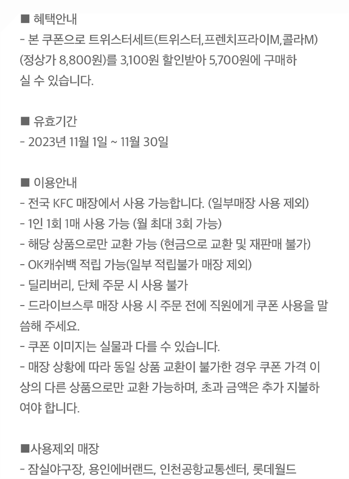KFC에서 할인받아서 트위스터 먹기를 가장 좋아하는, KFC 트위스터는 할인안해도 단품으로 잘사먹습니다. SK텔레콤 사용중인데, 어제 빕스에서 식사하고 할인받은후에, 아직 몰라서 못쓴게 있을까하고 쿠폰들을 찾아보다보니, 세상에… KFC 할인쿠폰이 있네요. 보통 저는 할인을 위해서 기프티콘을 구매했었는데, 사용기간내에 못쓰면 돈을 날리곤 했거든요 흑흑 그런 걱정없이 됩니다.