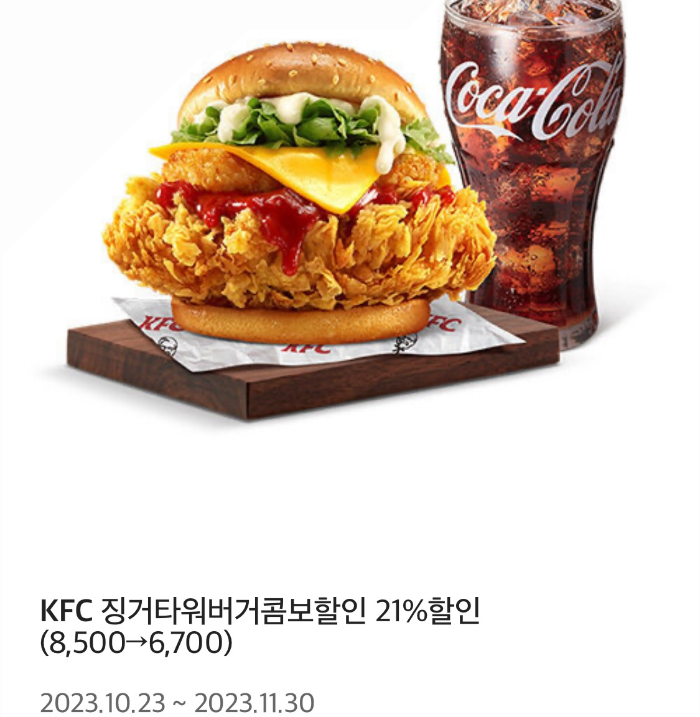 징거타워버거콤보 = 징거타워버거 +콜라M