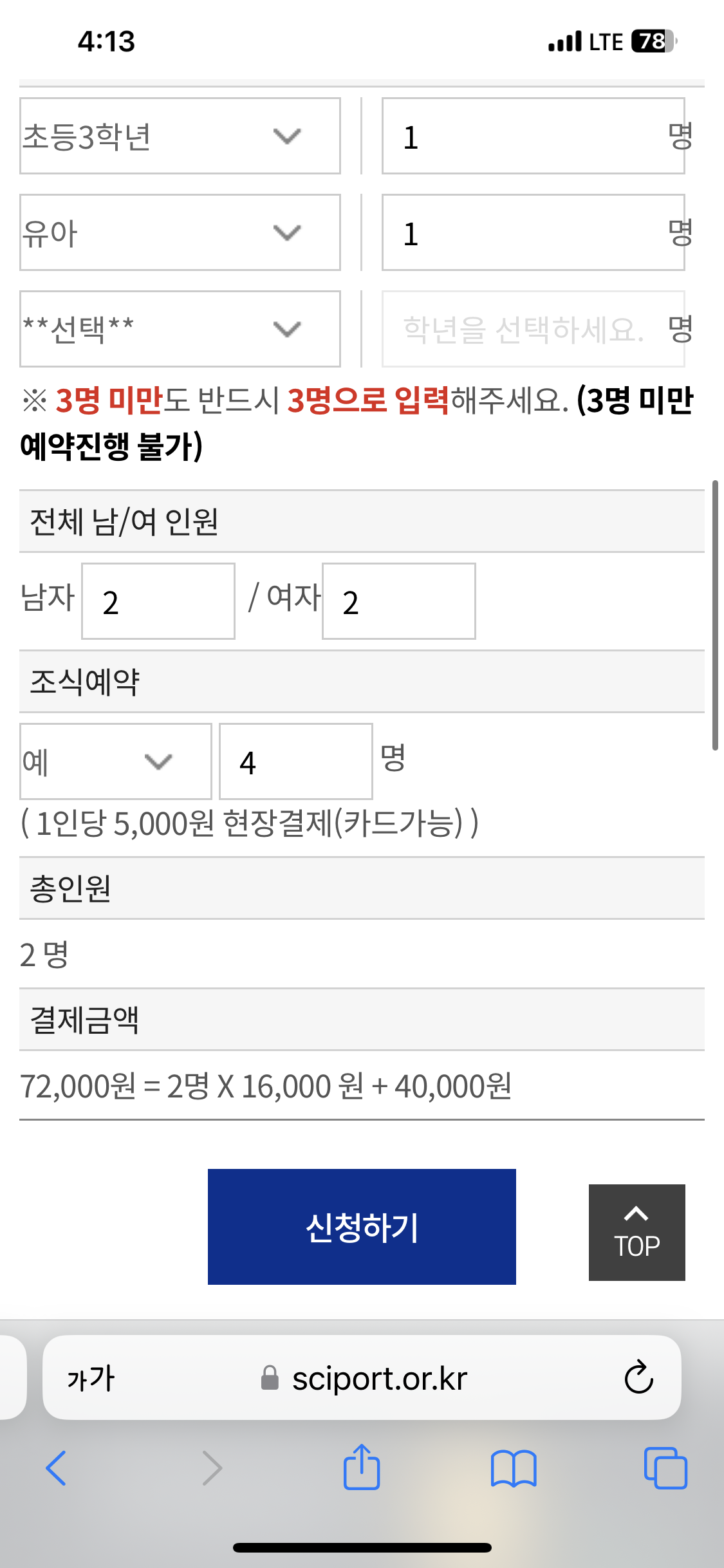 ※ 캠프 1일전 취소시 환불규정에 따라 수수료(80% 환불)가 발생할 수 있습니다.