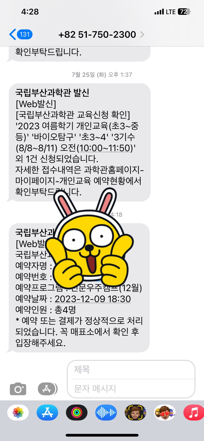 가족과학캠프 참가안내문자입니다.