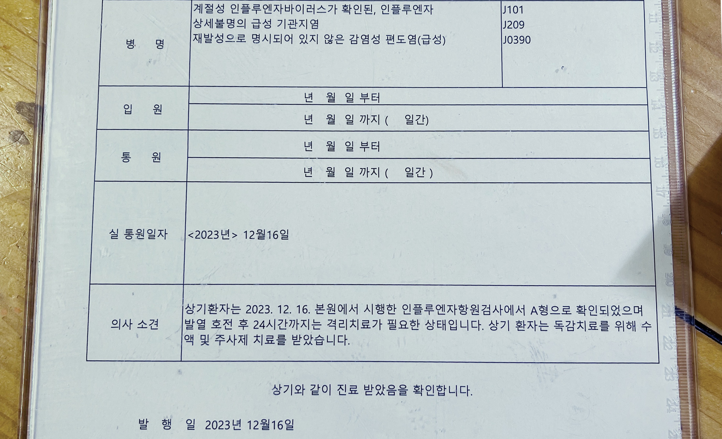 다음날도 열이나서 가서 검사하니 독감 확진