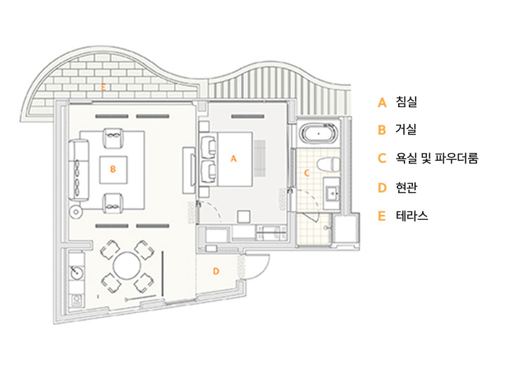 각각의 룸에는 시원하게 쭉 빠진 오션뷰 침실과 널찍한 욕실, 드레스룸이 있어 여유롭게 휴식할 수 있습니다.