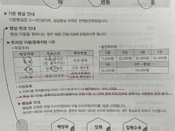 입원중 주차는 모두 유료주차입니다!! 주의!!