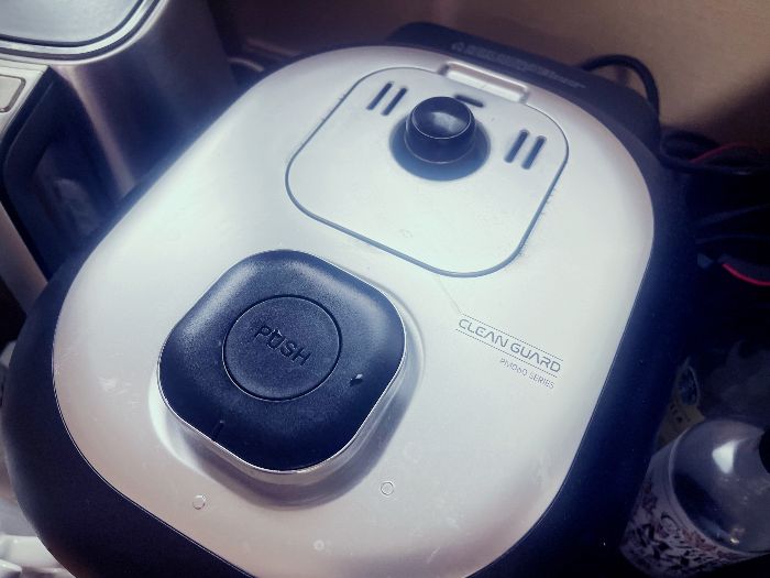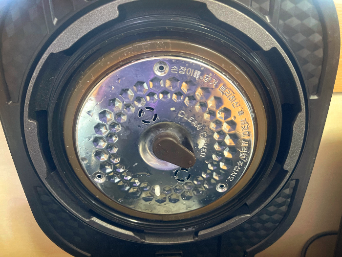 쿠첸 클린커버는 이렇게 제것과 같은 구형의 클린커버도 있고, 원터치로 버튼누르면 떨어지는 것도 있습니다.