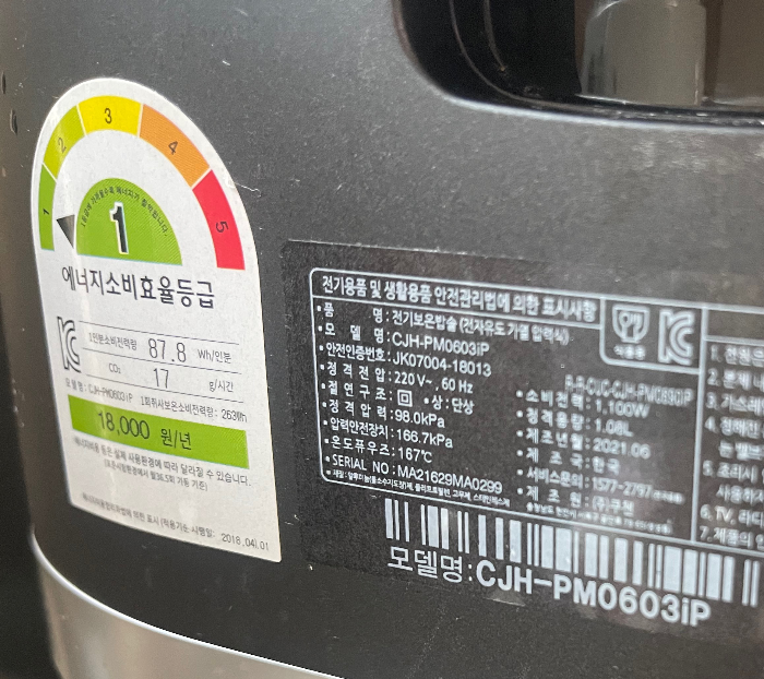 같은 모델의 6인 쿠첸 전기압력밥솥이 시댁에도 있어서 두세트를 주문해서 배송비가 아깝지 않습니다 호홋~~
