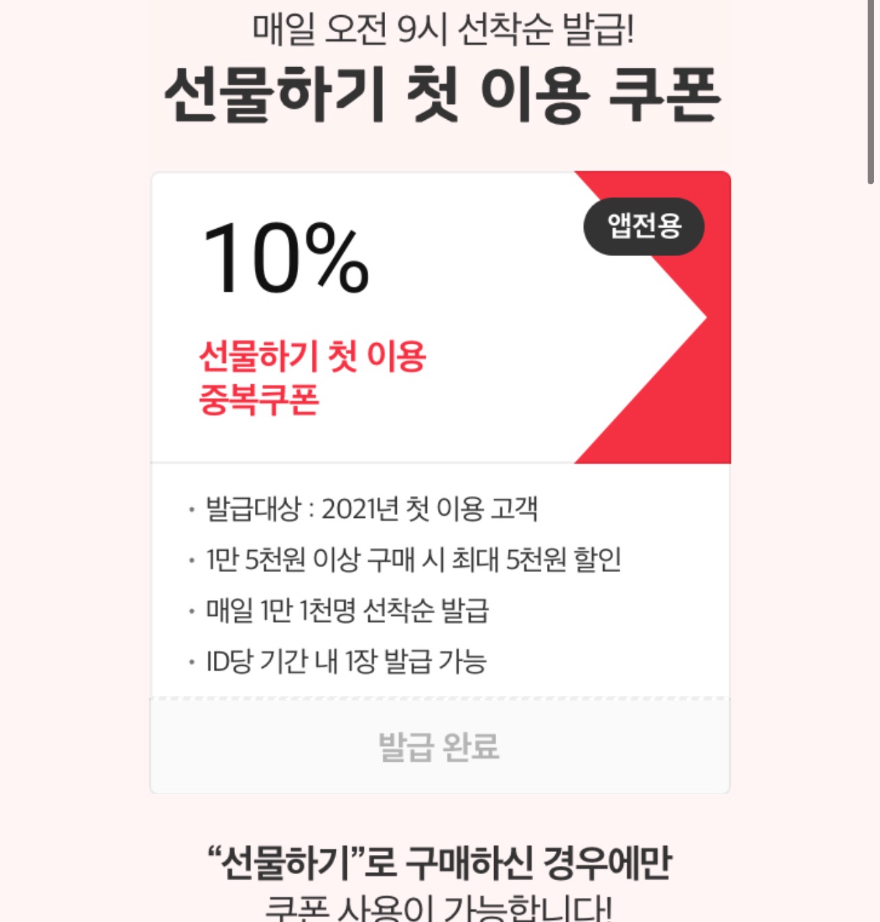 선물하기 첫 이용