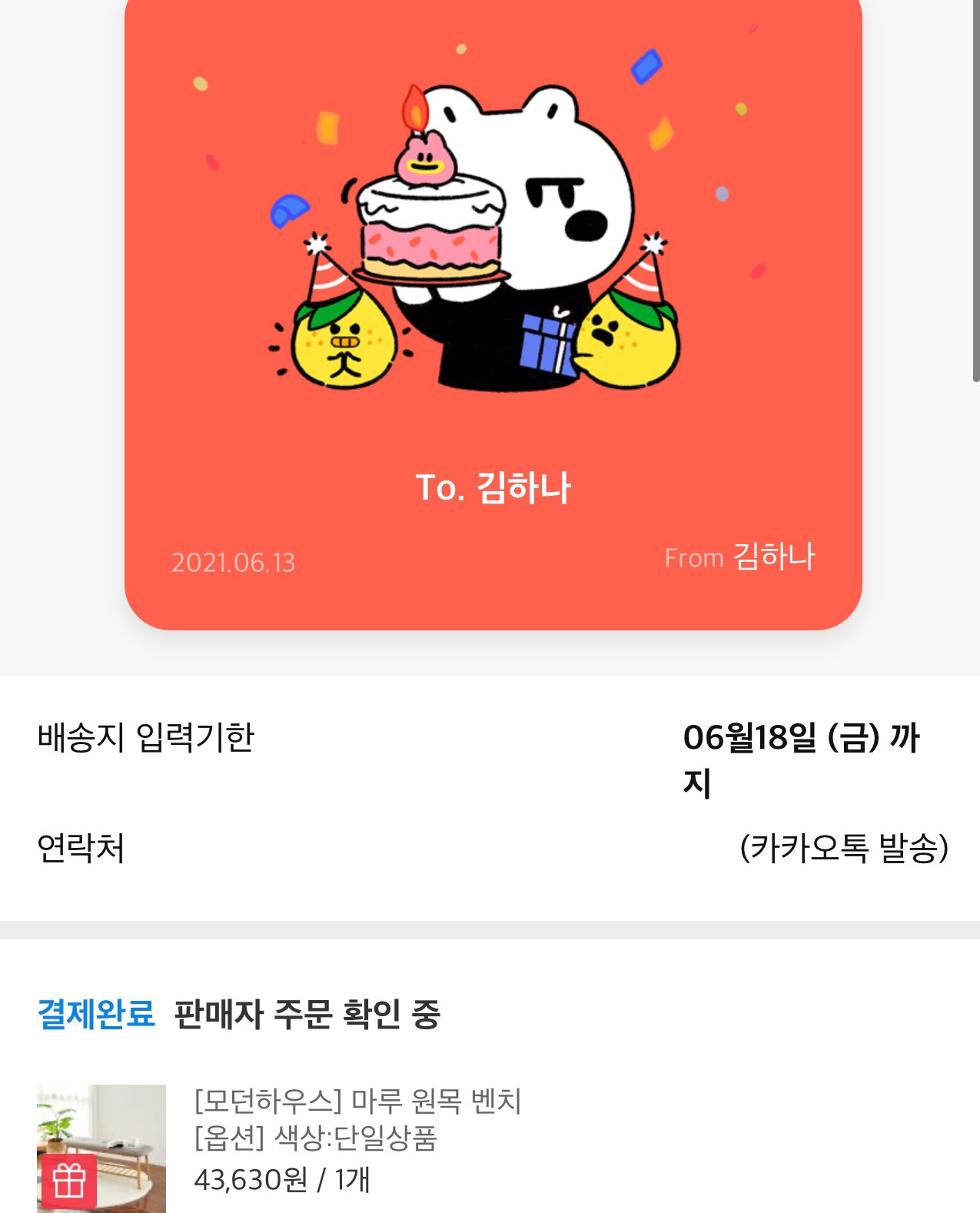카카오 선물하기는 꼭 타인이어야 하는것은 아니더라구요