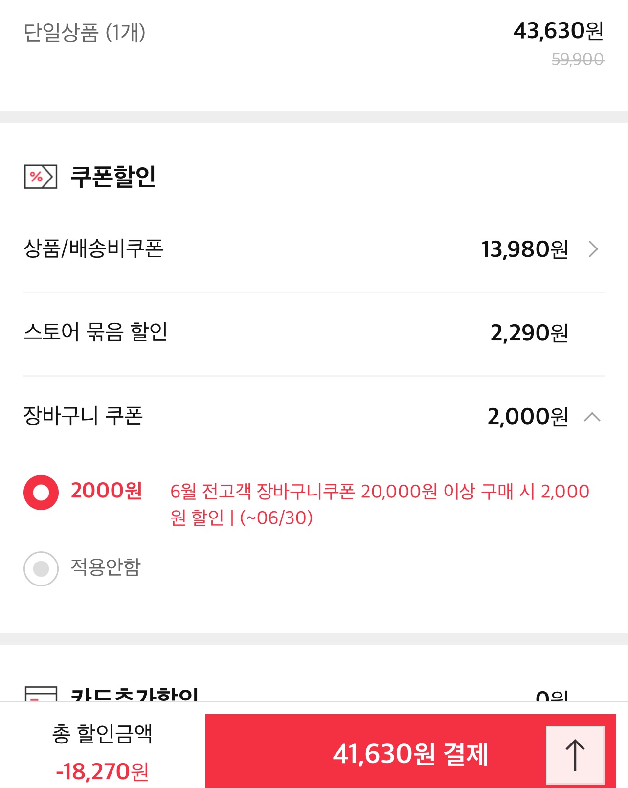장바구니 쿠폰 2천원까지 써서