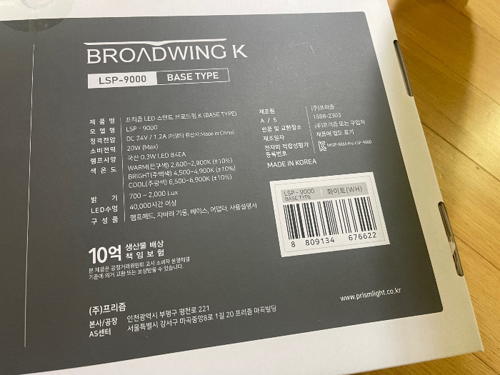 BASE TYPE 으로 했습니다. 책상이 아니라 밤에 잘때 책보려할때도 쓰고 싶어서, 바닥에 세우기도 하겠지. 싶어서 브로드윙K 베이스타입 선택