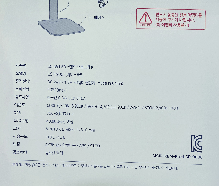 made in Korea (어댑터는 made in china : DC 24V/1.2A)