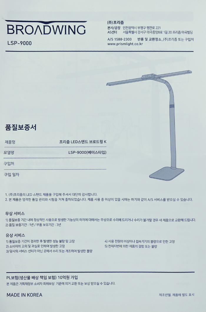 프리즘LED스탠드 브로드윙K LSP-9000