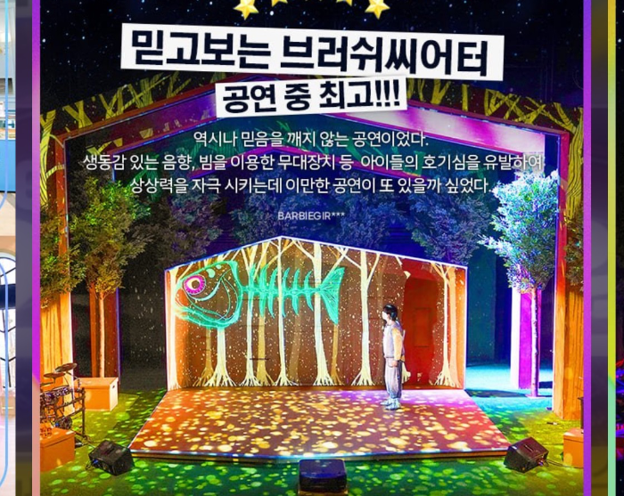 어린이대상 연극 뮤지컬은 원작 딱 그범위내에있거든요. 하지만 매직아트쇼 미디어아트공연 이런건 또 처음이라.. 새로운 시도 그리고 성공적인 결과물 많은 칭찬후기들을 보며 기대해봅니다.