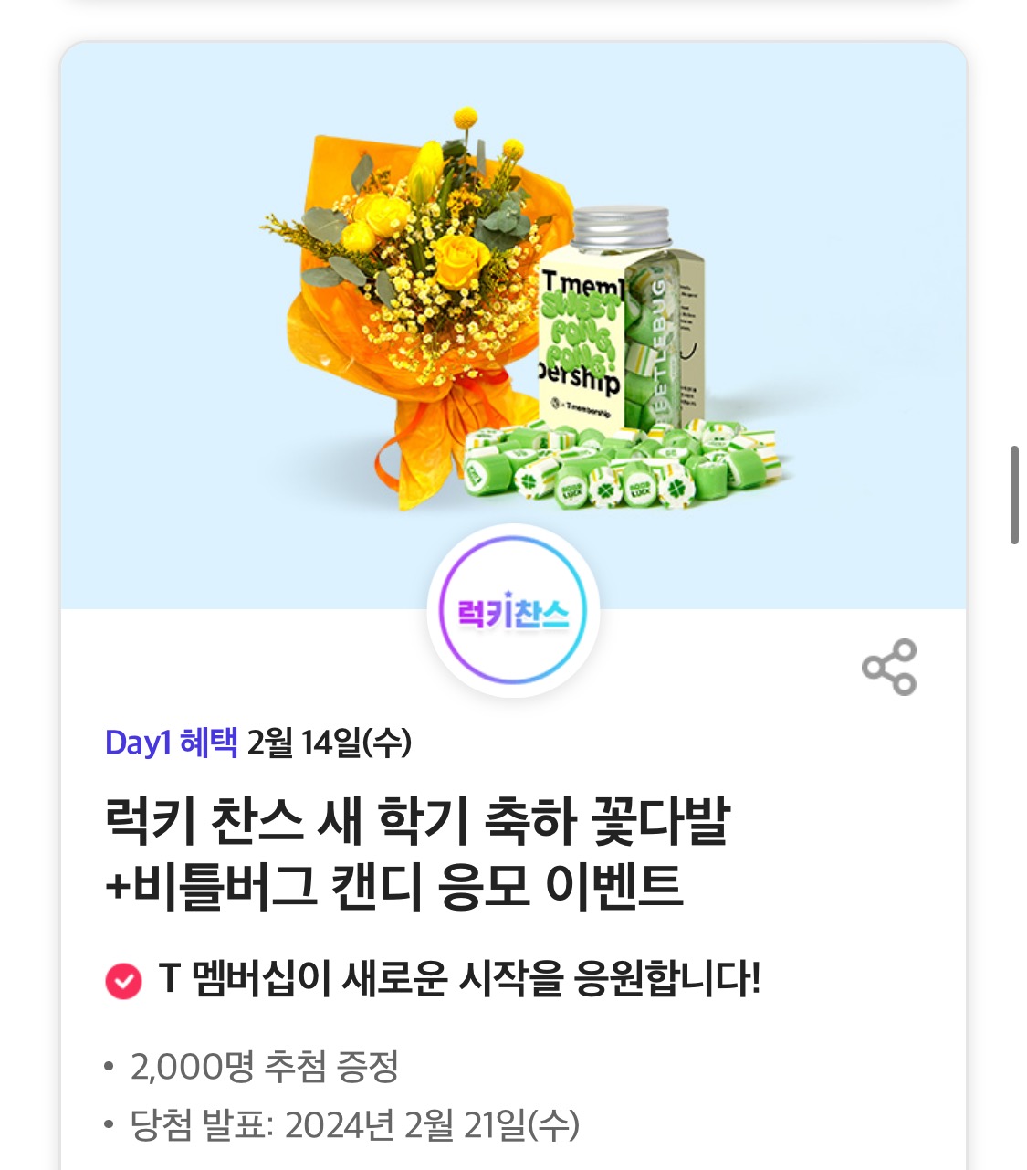 럭키 찬스 새 학기 축하 꽃다발 +비틀버그 캔디 응모 이벤트