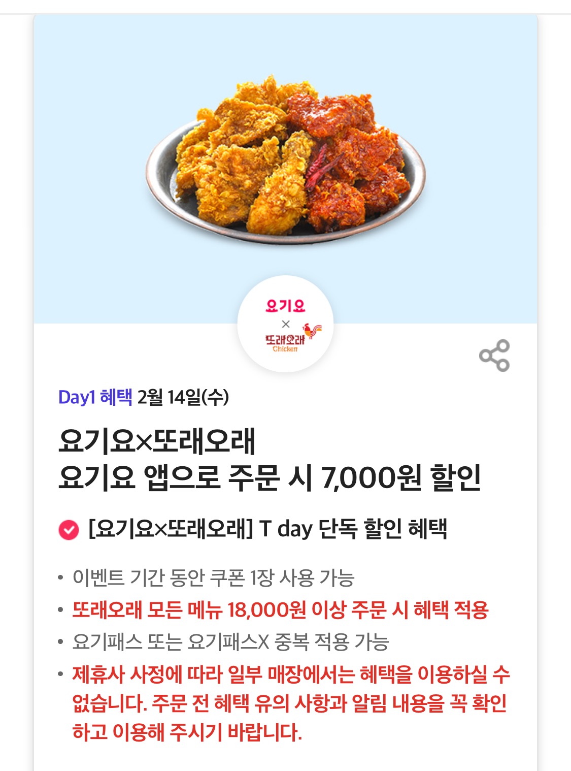 ~ [요기요x또래오래] T day 단독 할인 혜택