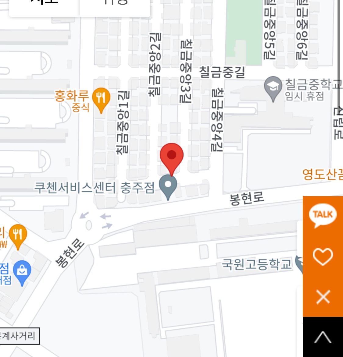 • 주소 : [27362]충북 충주시 칠금중앙1길 4-6