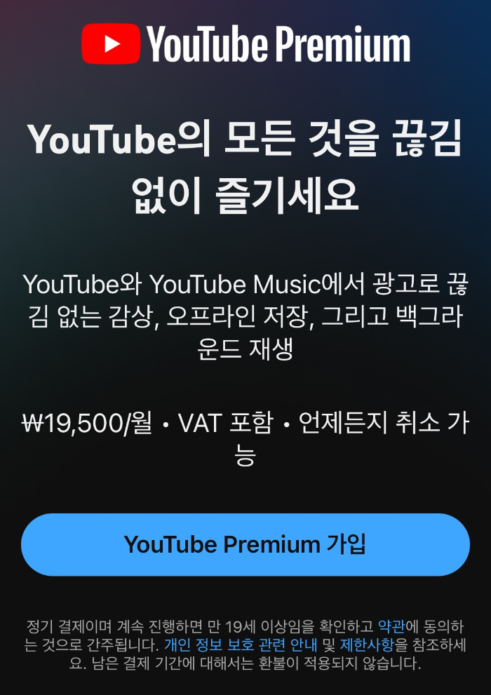 왜 아이폰 사용자는 유튜브 프리미엄을 부가세포함 월 19500원이나 지불하여야 하는 것인가? 비싼 아이폰 쓰는...XX?