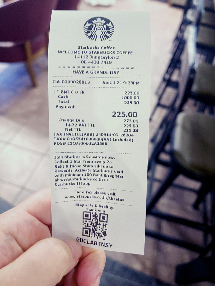 태국 푸켓 정실론 스타벅스 : 아메리카노 가격 , 디저트 및 전 음료 가격 정리 태국물가 비해서는 비싼편