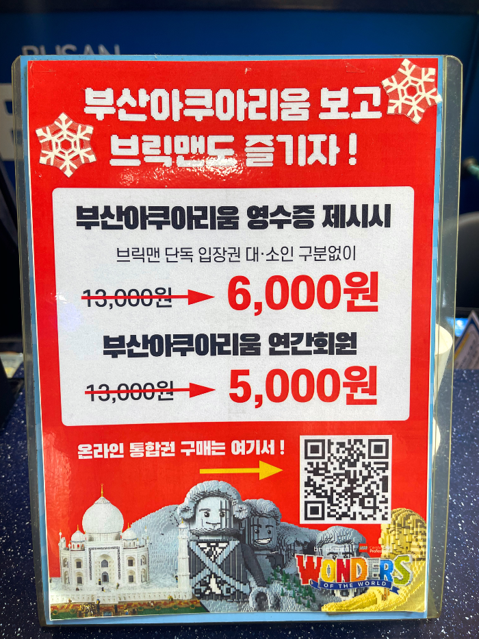 아쿠아리움 할인받아서 들어가고 브릭맨은 아쿠아리움 영수증으로 할인받는게 나아요