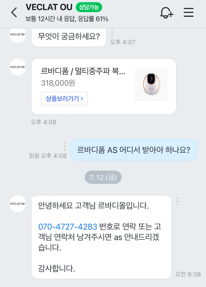 르바디폼 AS 어디서 받아야 하냐고 했더니