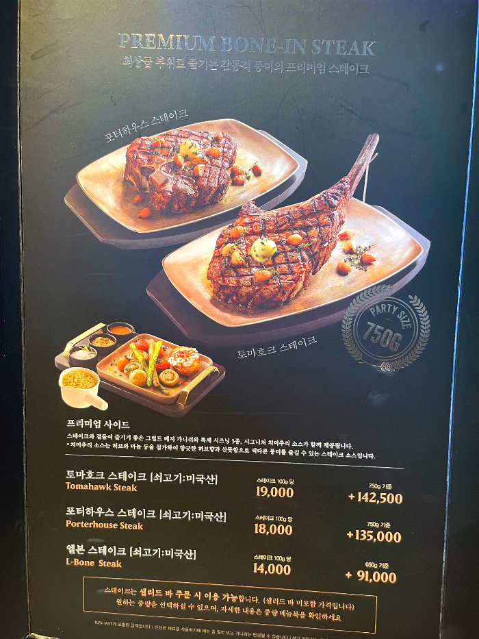 토마호크 스테이크 750g 135000원 추가