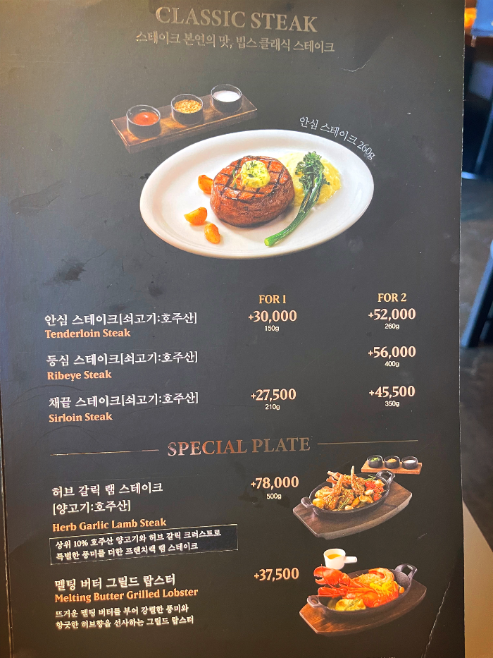 등심스테이크 2인 56000원 추가 400g
