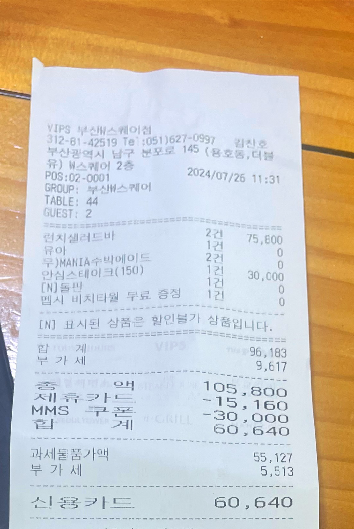 부산W스퀘어점을 이용하였으며