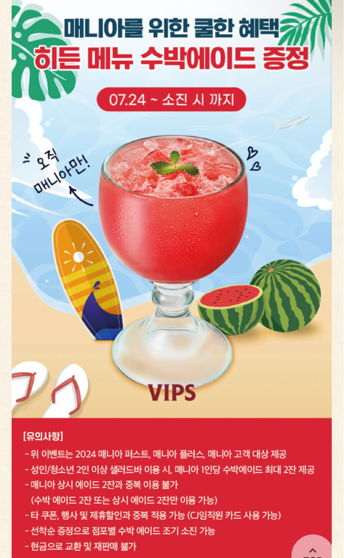 매니아 등급 수박에이드 2잔 무료라고 해서 ^^