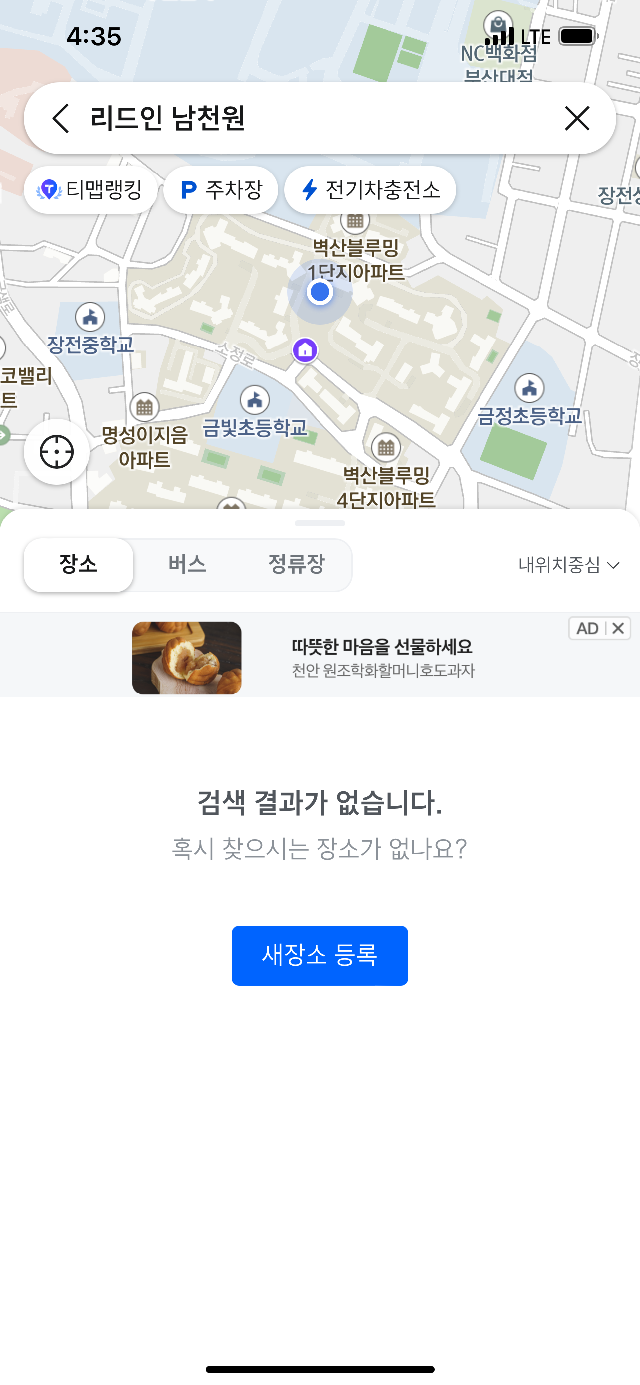 새장소 등록하기 아래에 나와요
