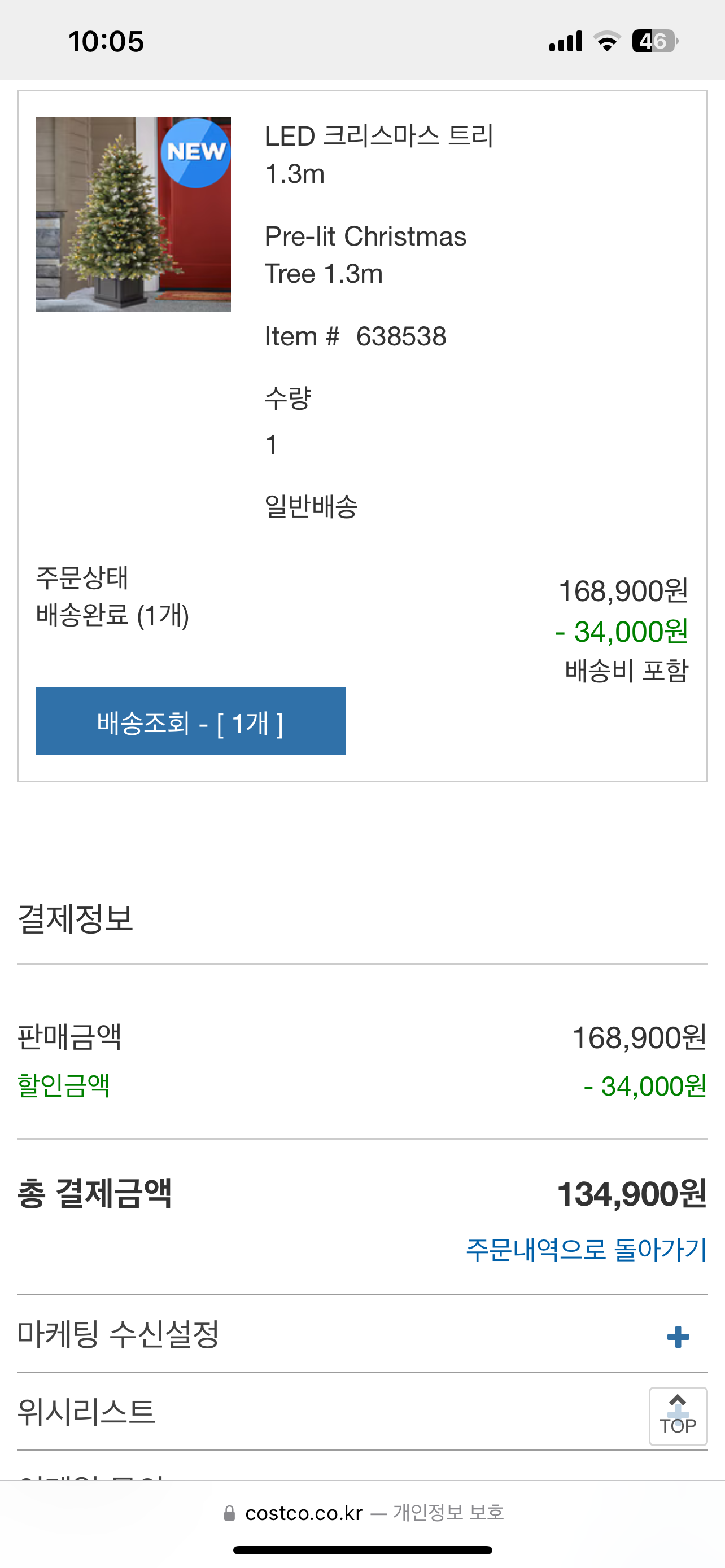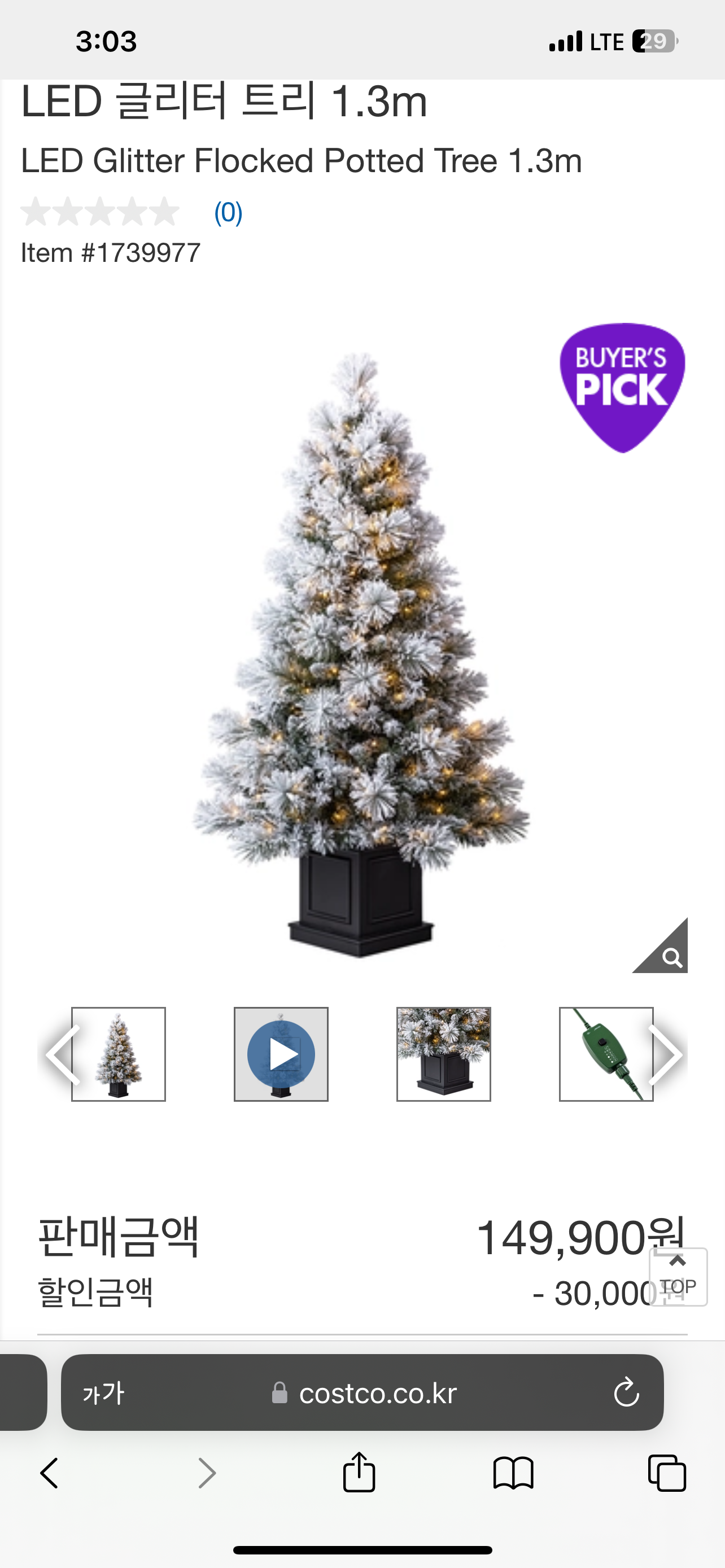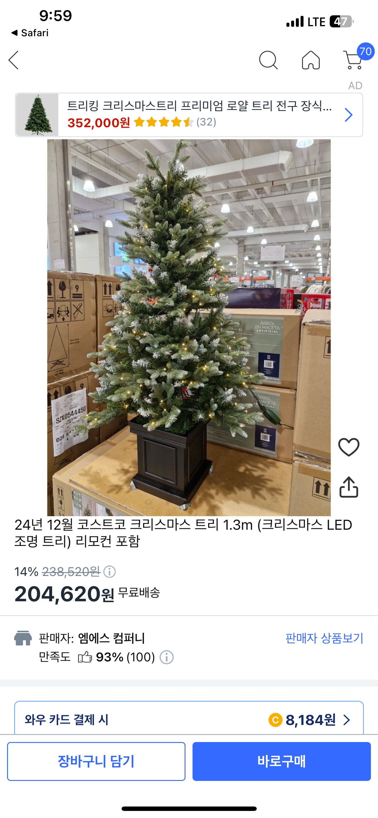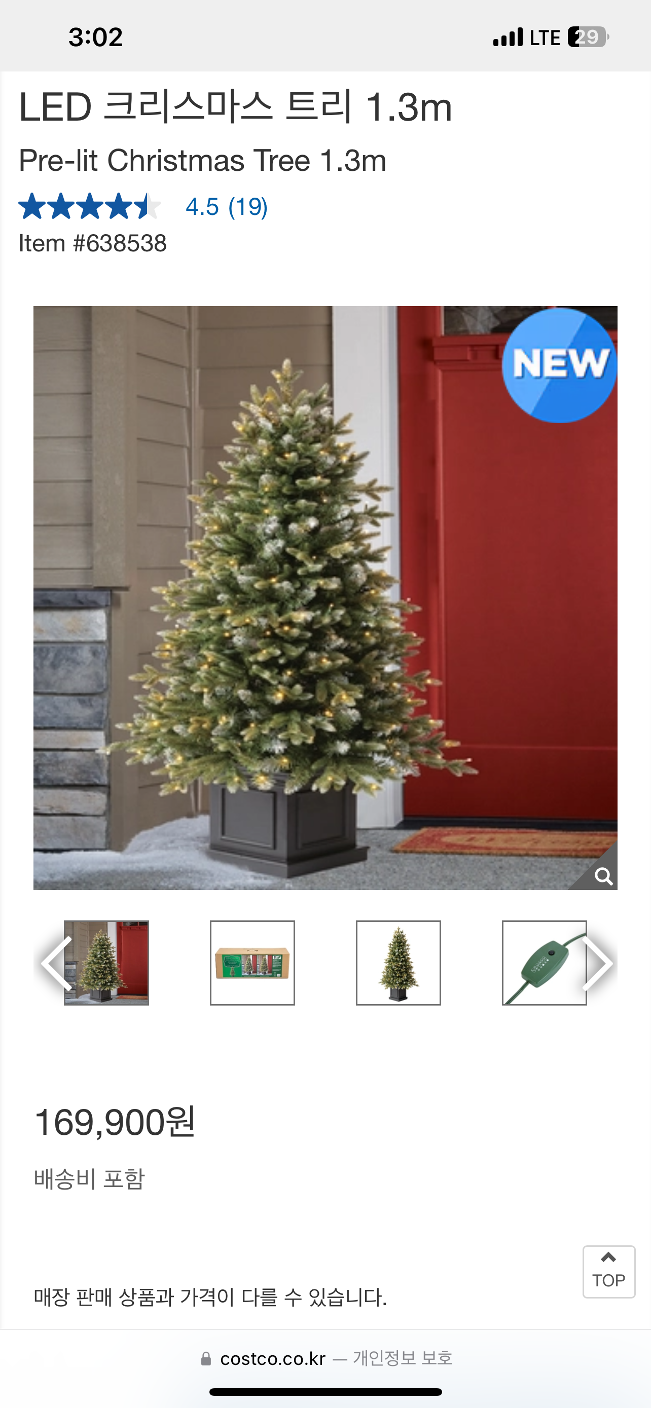 24년 12월 코스트코 크리스마스 트리 1.3m (크리스마스 LED 조명 트리) 리모컨 포함 - 풀세트 트리 |